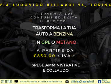 Modifica la tua auto BENZINA in GPL o METANO, a partire da 850,00 € + IVA + SPESE AMMINISTRATIVE e COLLAUDO.